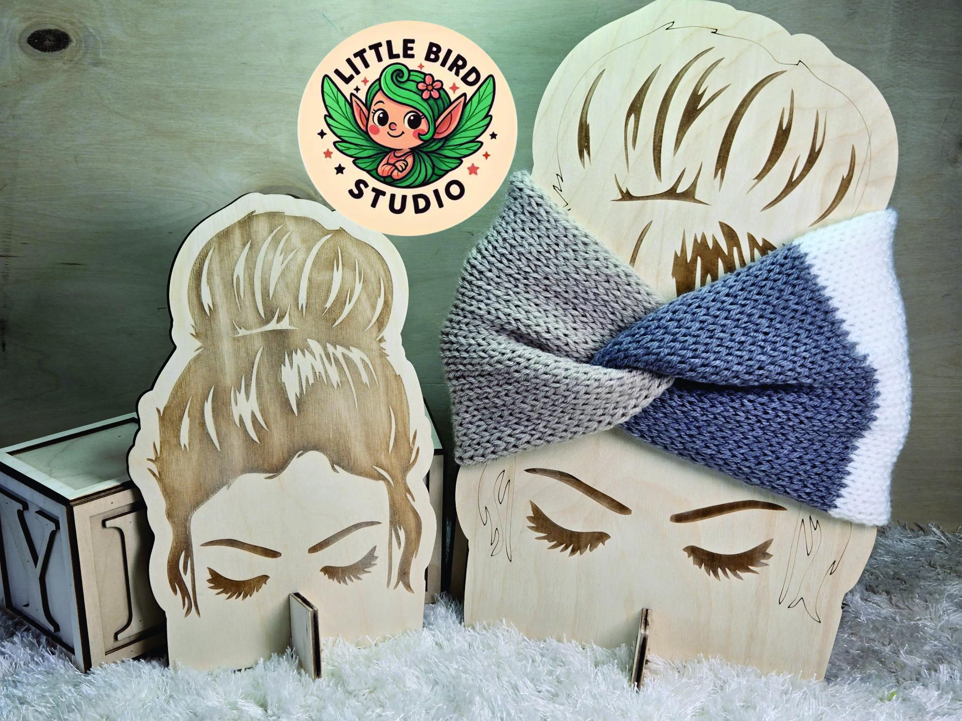 These lightweight wooden display head cutouts are precision laser-cut and engraved from natural birch plywood. The clean silhouette and subtle engraved details create a modern, calming look that works on shelves, mantels, desks, or as part of a gallery wall. Craft supply for mixed-media projects, jewelry displays, beanies or headbands.