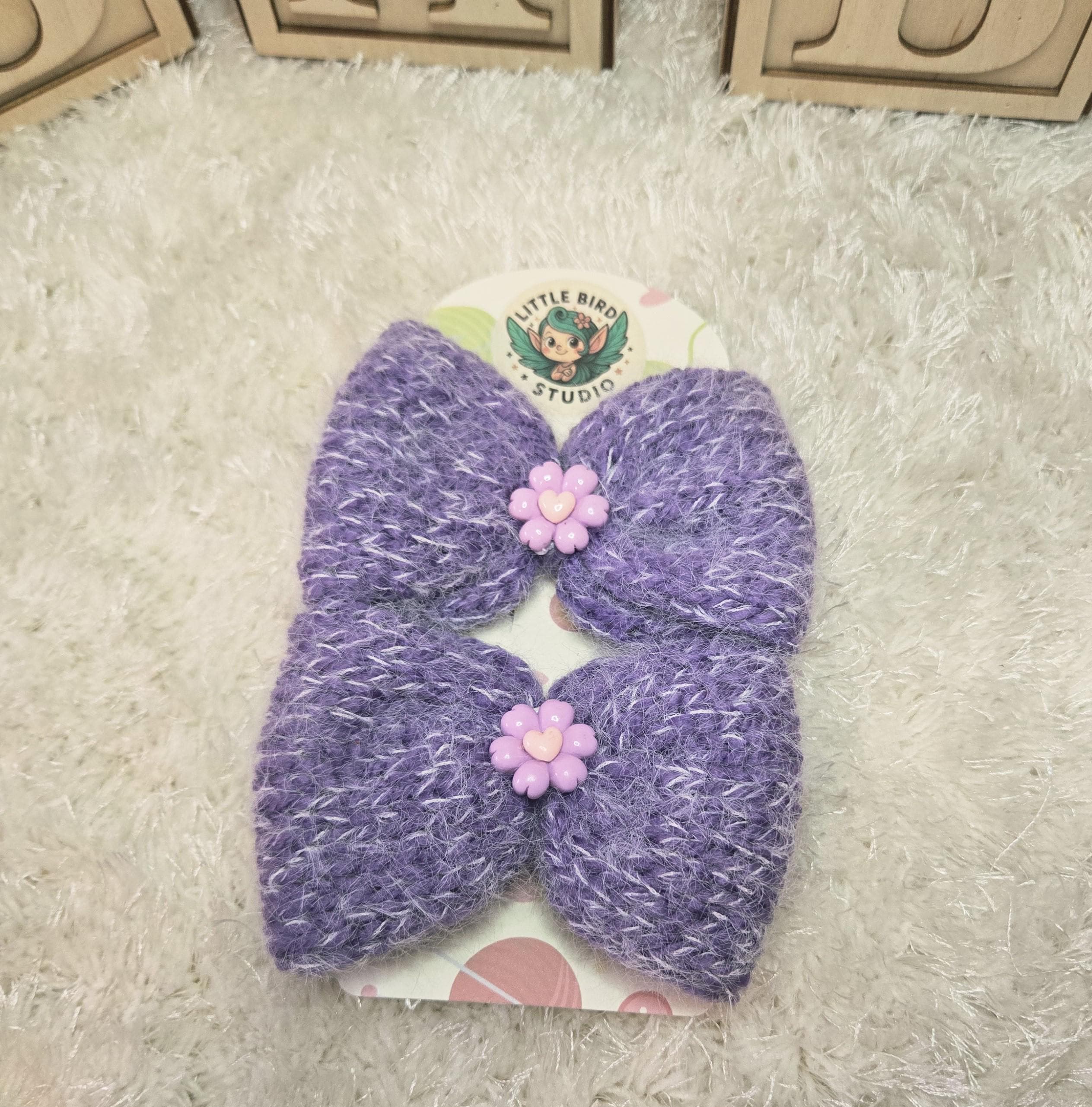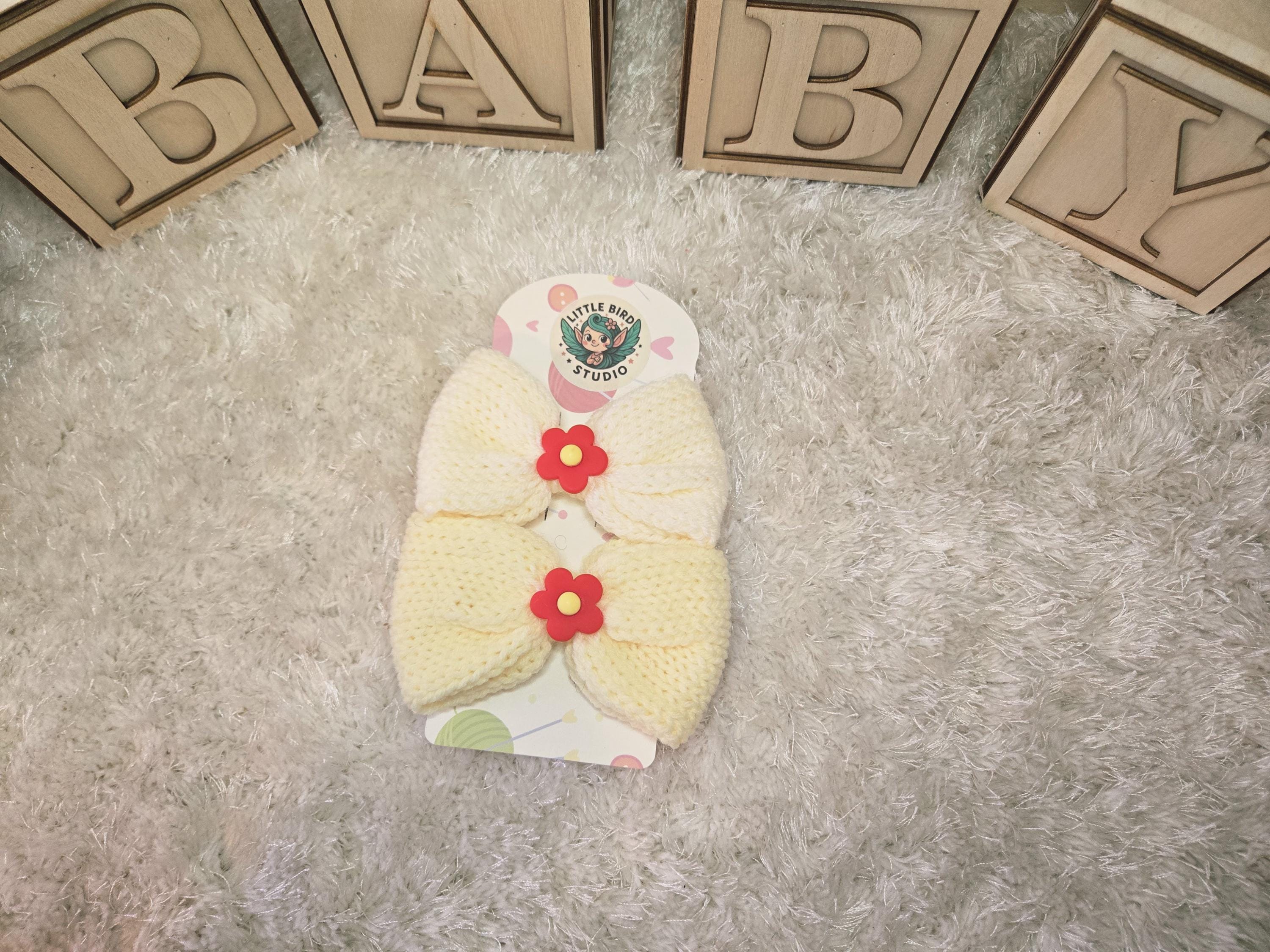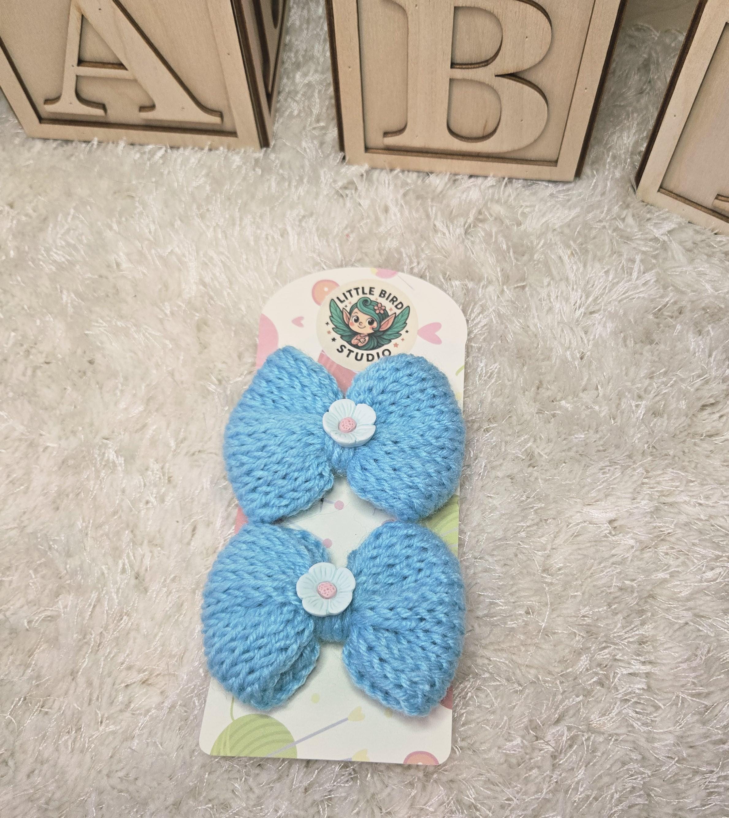 Bring a touch of soft, whimsical charm to any outfit with these handmade knitted bow hair clips. Each bow is lovingly crafted from plush yarn and finished with an adorable embellishment — the perfect blend of cozy cottagecore and playful kawaii style.